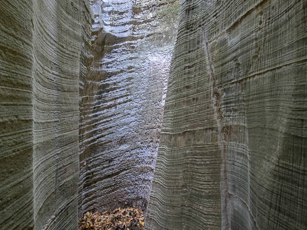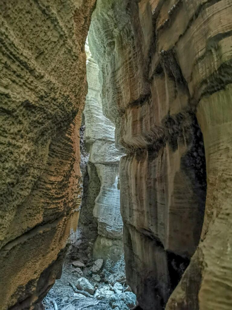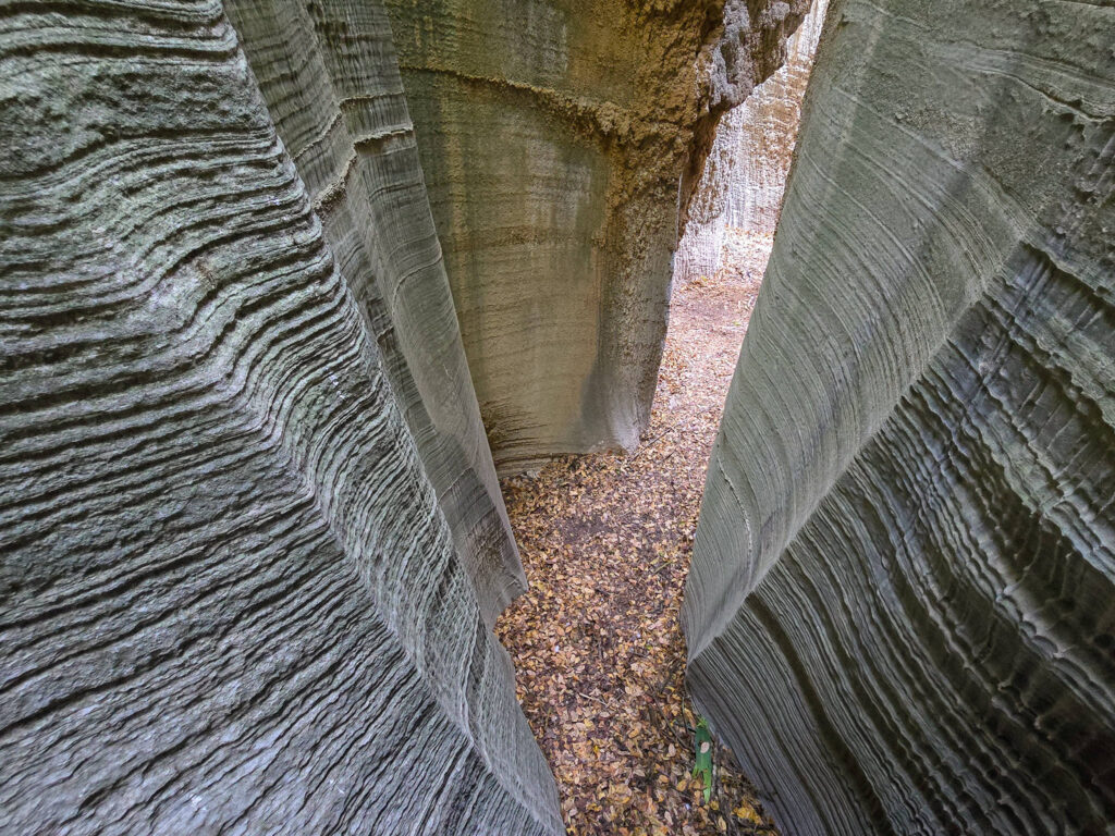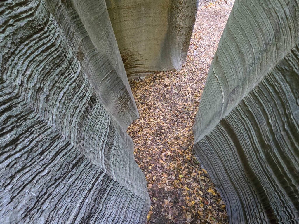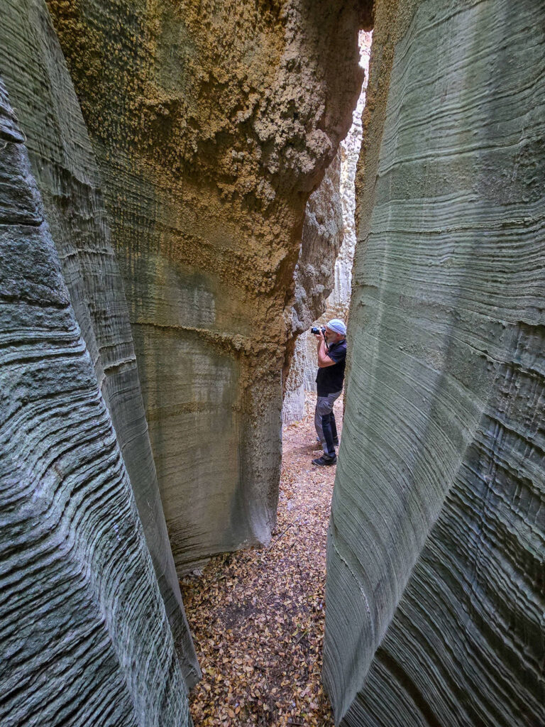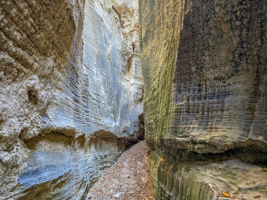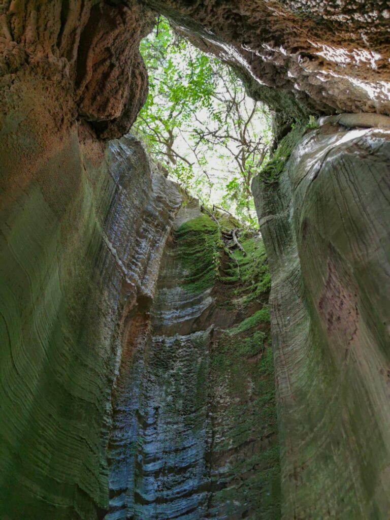 Ένα στενό πέρασμα σαν μυστική πύλη οδηγεί σε στενό διάδρομο ανάμεσα σε ψηλά κάθετα πρανή, τα οποία είναι διακοσμημένα με αιωνόβια ανάγλυφα μωσαϊκά. Με την άρτια συμμετρία και την μοναδική τους υφή τα πέτρινα αυτά γλυπτά θυμίζουν κεντήματα της φύσης.