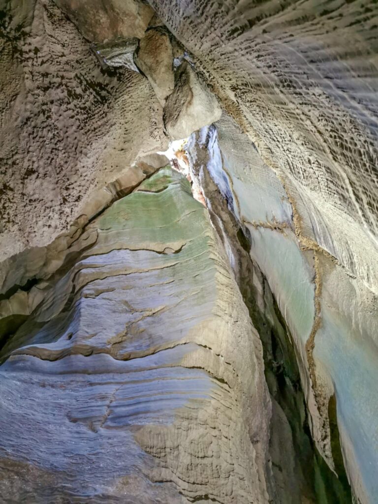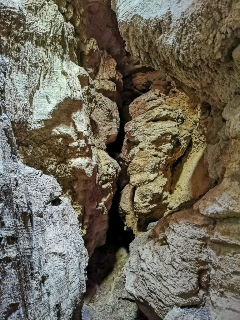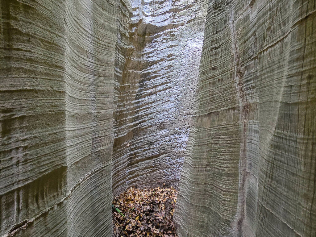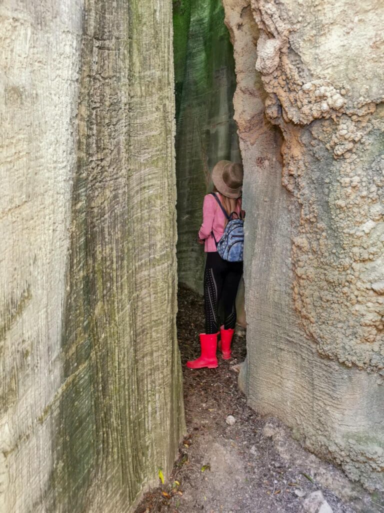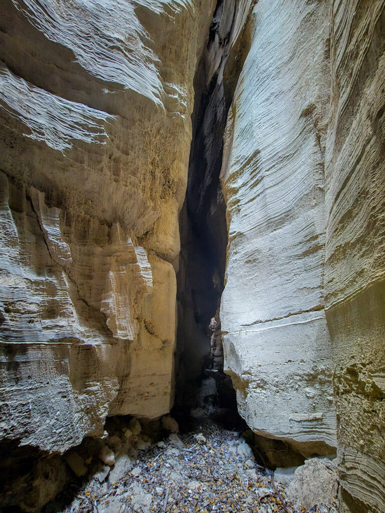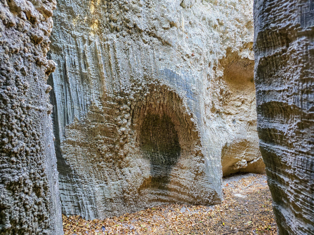 Ένα στενό πέρασμα σαν μυστική πύλη οδηγεί σε στενό διάδρομο ανάμεσα σε ψηλά κάθετα πρανή, τα οποία είναι διακοσμημένα με αιωνόβια ανάγλυφα μωσαϊκά. Με την άρτια συμμετρία και την μοναδική τους υφή τα πέτρινα αυτά γλυπτά θυμίζουν κεντήματα της φύσης.